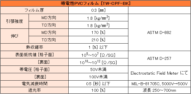 本製品には優れた静電気防止効果がある帯電防止PVCフィルムを採用しており、さらにシートの表面(片面)には、導電性カーボンインキを使ってグリッドマーク(格子柄)を印刷しています。